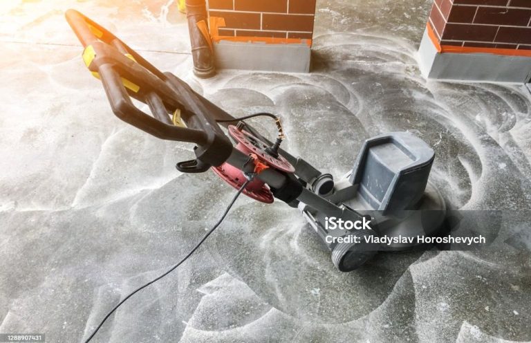 Beim Schleifen wird die Terrazzo-Oberfläche geglättet, die Marmorpartikel treten hervor und das charakteristische Muster entsteht.